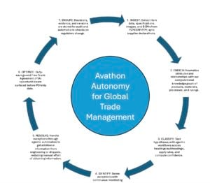 The key differentiator with Avathon’s Autonomy Platform is the ability to fully span the supply chain lifecycle—from classification and tariff optimization to supplier collaboration and sourcing execution. The Autonomy Platform fuses diverse data sources, orchestrates workflows, and adapts dynamically to changes—turning supply chains into resilient processes. Global trade management is key to effective supply chain operations and Avathon’s approach solves the toughest challenges in global trade, e.g., classification, country-of-origin identification, and tariff optimization, all in a fraction of the time, and with far greater accuracy, than manual rules-based processes.