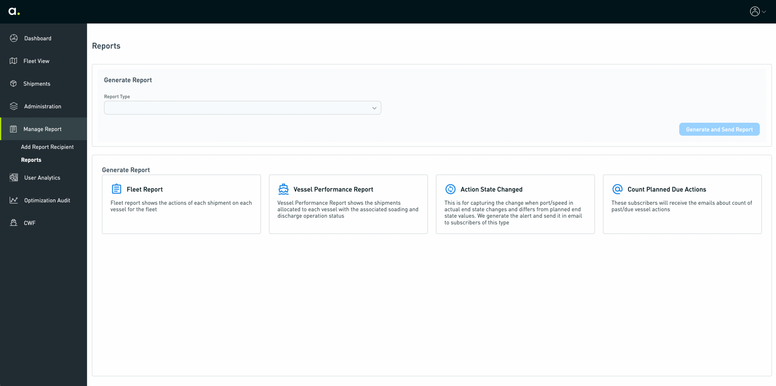 The Fleet View gives you a real-time, intelligent snapshot of transportation operations—visualizing vessel schedules, cargo assignments, and operational states for full situational awareness, while providing performance metrics and smart search tools to optimize logistics and asset management.